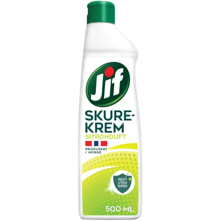 Skurekremen inneholder naturlige skurekorn som gjør den hensynsløs mot de vanskeligste flekkene. Skurekremen er skånsom på de fleste harde overflater, inkludert emalje og keramisk platetopp.