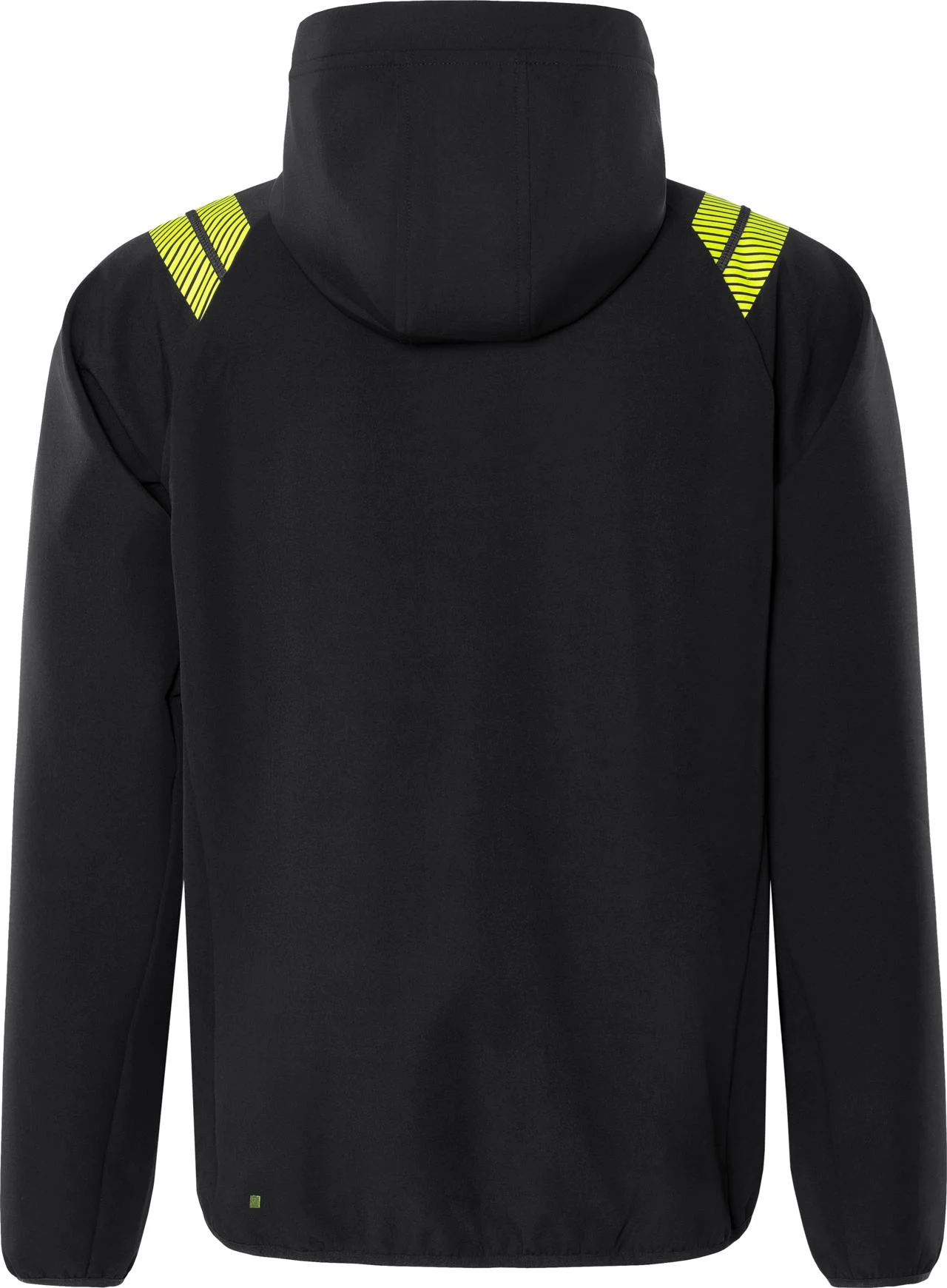 Praktisk softshelljakke med hette designet for den moderne håndverkeren. Jakken er vindtett, vannavvisende og pustende, og laget med strech materiale for å gi stor bevegelsesfrihet og komfort. Perfekt nesten hele året. – Vindtett, vannavvisende og pustende – Stretchmateriale – Resirkulert materiale – Regulèrbar hette med snøring – Elastisk bånd nederst og på kanten av ermene – Frage: Svart – Materiale: 100% polyester – Sesong: Helårs – Maks. vasketemperatur 40 °C, normal prosess