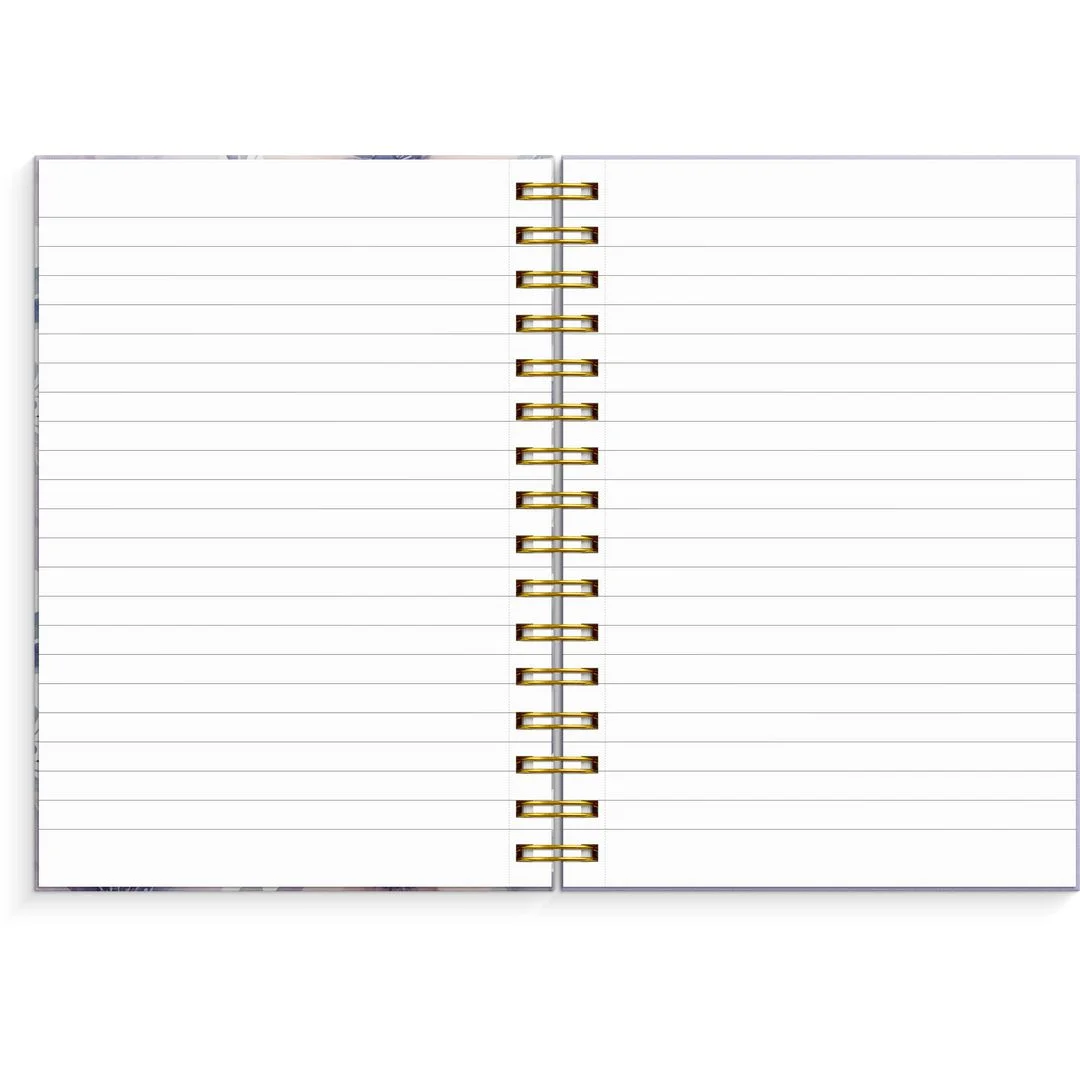 Spiralisert skrivebok i matt lilla kartongomslag og gull spiral. En god følgesvenn for dine notater. Boken har hele 300 linjerte sider, så her har du masse skriveplass. Det praktiske A5 formatet gjør at boken er liten nok til å ta med seg, og gir samtidig masse plass til dine notater. Formatet gjør den lett å ta med seg og passer til alle ulike formål- enten det er på jobb eller privat