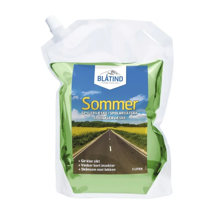 Blåtind Sommerspylervæske er ferdigblandet spylervæske som renser bilruter effektivt for insekter, trafikkfilm og skitt. BLÅTIND Sommerspylervæske frostsikrer ned til -5°C ihht.