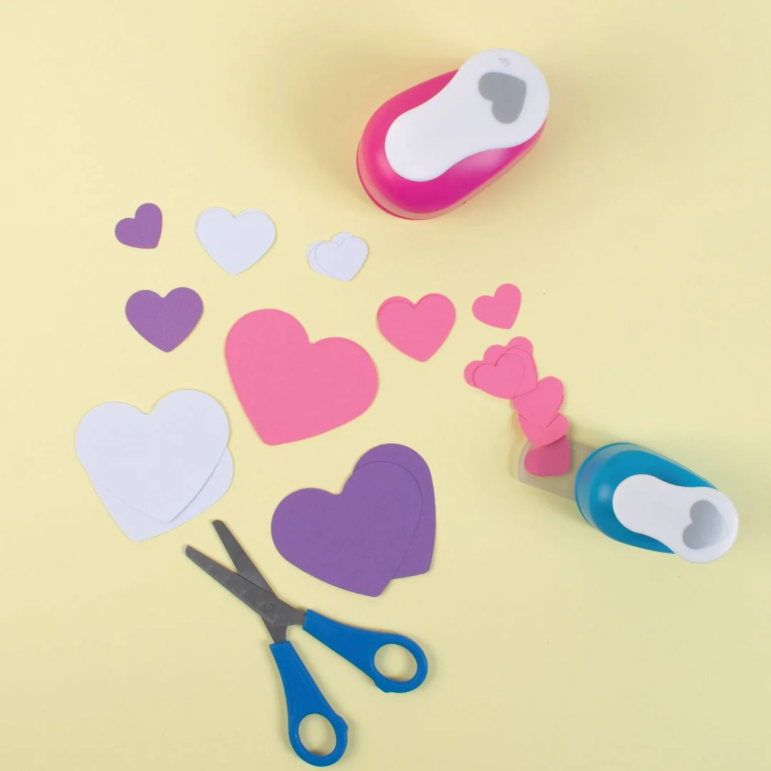 Figurslag med motiv av et hjerte. De utstansede figurene kan brukes til mange ting, for eksempel å dekorere gratulasjonskort, på navnelapper eller til scrapbooking. – Antall: 1 stk. – Mål: Lengde:70mm, Bredde: 42mm, Høyde52mm – Stempeldiameter: 25mm – Materiale: ABS-plast, Metall