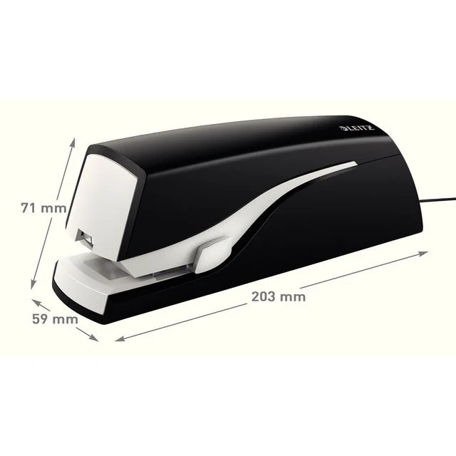 Elektrisk stiftemaskin for opptil 20 ark à 80g Enkel enhånds betjening Strømadapter 3 års garanti ved bruk sammen med Leitz stifter GS-testet.