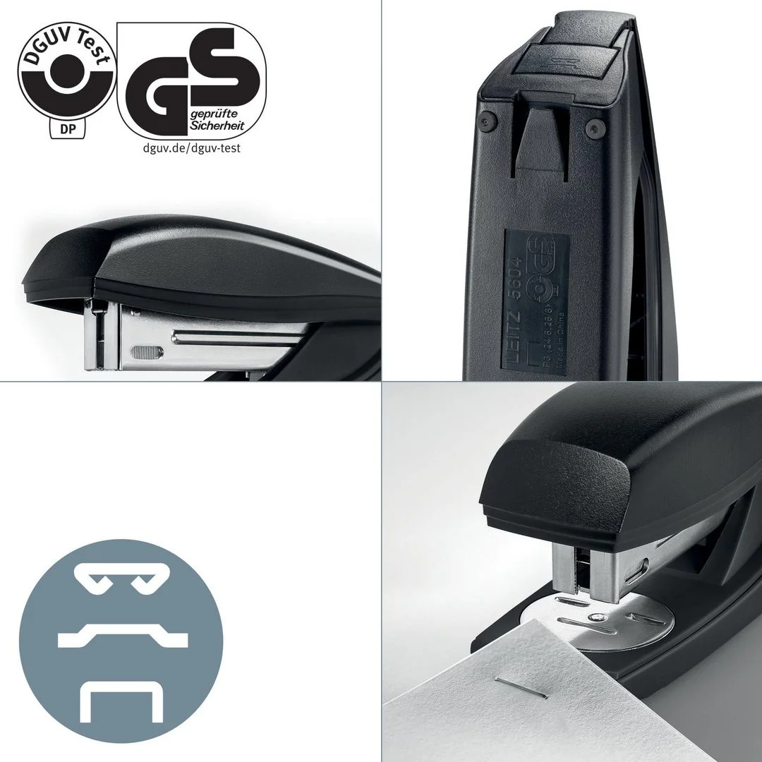 Integrert stiftfjerner og valgfri åpen/lukket/nagle-stifting. Bruker Leitz Power Performance P3-stifter (24/6, 26/6). Robust design med 10 års garanti for langvarig bruk. Kompakt og praktisk for hjem og kontor. Video.
