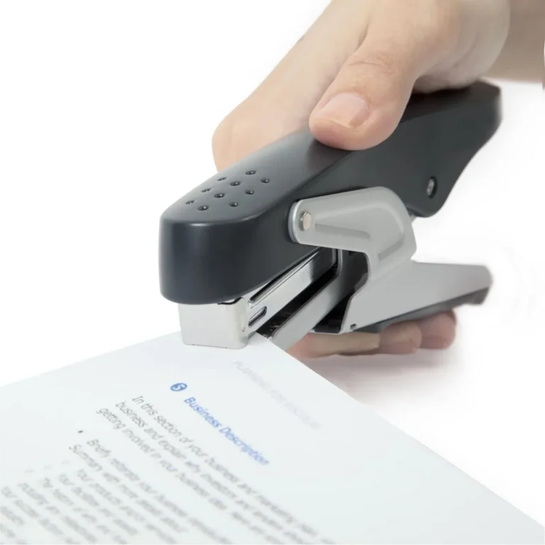 Rapesco Stiftetang Eco Beluga med topplastemekanisme og ergonomisk håndtak for komfortabelt bruk.
