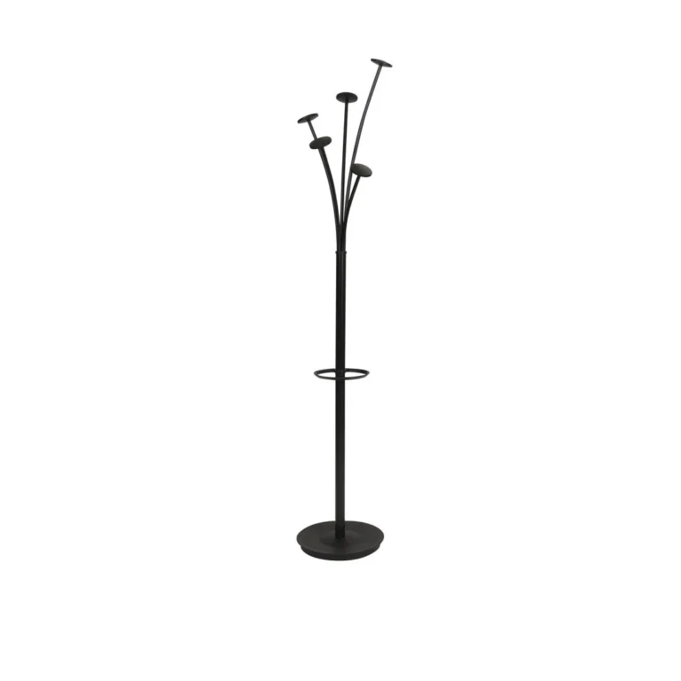 Elegant frakkstativ med 5 kroker Med en praktisk paraplyholder og en vektet base med vannbeholder, er dette innovative og smarte designet en nyskapende løsning for organisasjonen av dine hverdagslige behov.