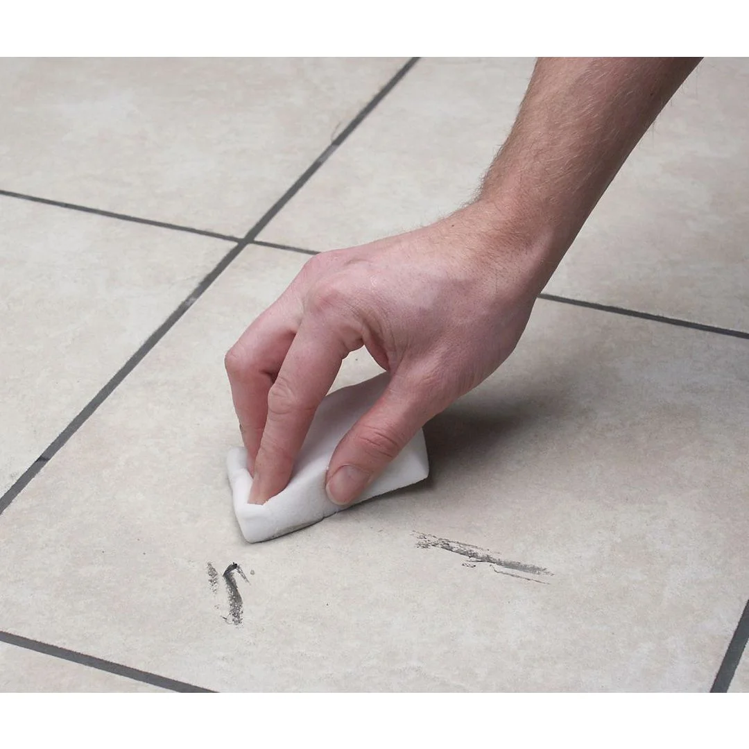 Her trengs ingen kjemikalier, kun tilsett vann til svampen, klem ut og knikk svampen lett over til flekken er borte.