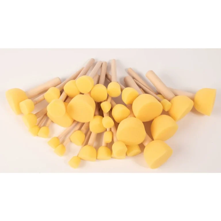 Stoppesvamp laget av skumgummi med kortere trehåndtak.