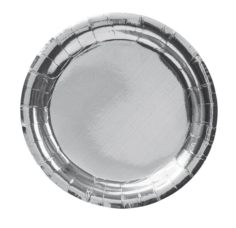 Luksuriøse sølvtallerkener til engangsbruk med en diameter på 18,5 cm – perfekt til festlige anledninger. Pakken inneholder 8 tallerkener som gir borddekkingen et elegant løft.