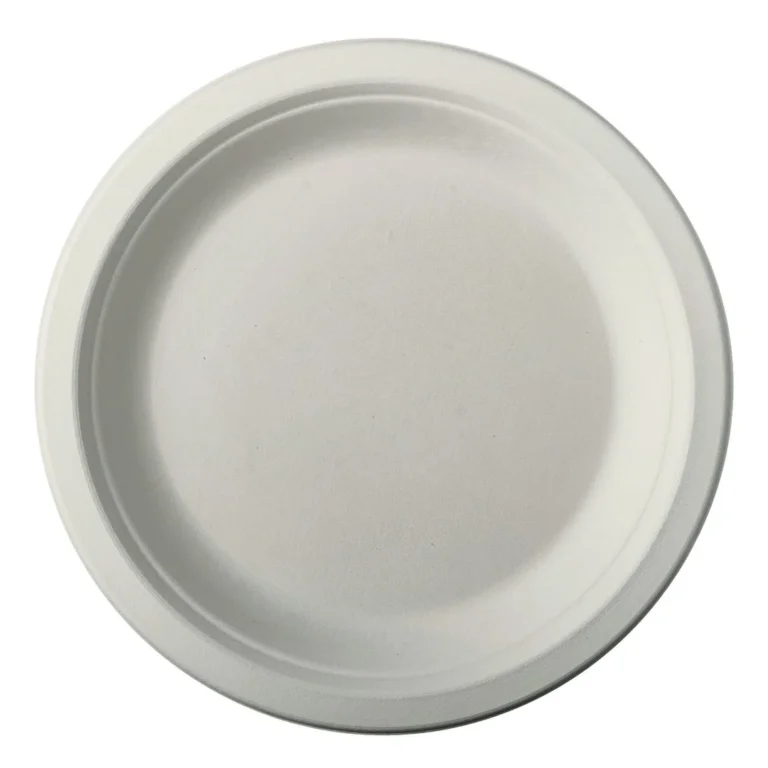 Sterk og stabil tallerken, produsert av bagasse, til servering av alle typer mat. Materialet er basert på fornybar råvare, fra sukkerrørproduksjon.