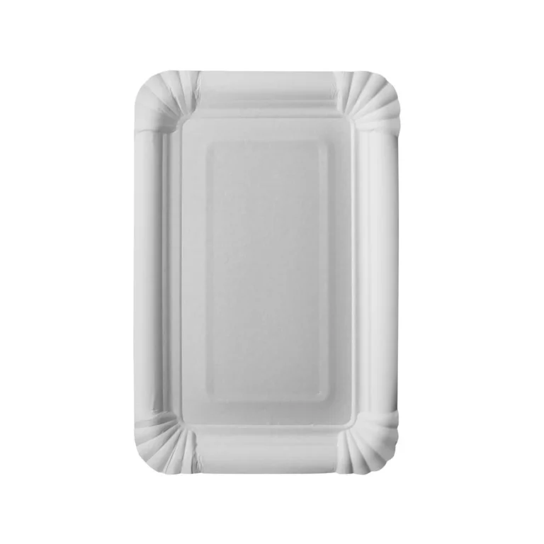 Solid rektangulær tallerken produsert av fiberpapir. Et utmerket alternativ for servering av varm eller kald mat Disse tallerkenene er en praktisk serveringsløsning til fest, møter, konferanser eller spise- og pauserom på arbeidsplassen. Den lette designen gjør dem enkle å stable og oppbevare, slik at du alltid har dem på lager og lett tilgjengelig.