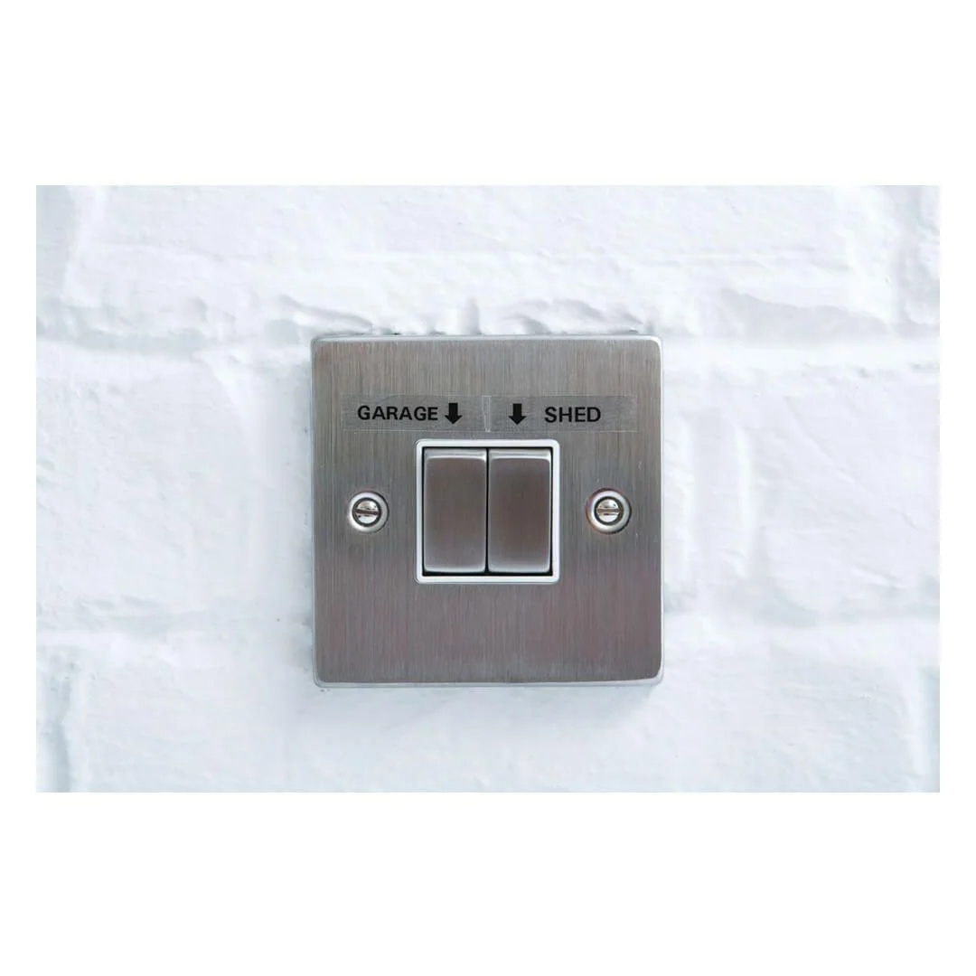 Lager blanke etiketter med sort trykk. Disse etikettene kan brukes både innendørs og utendørs under normale forhold, og er spesielt godt egnet for flate, jevne underlag.