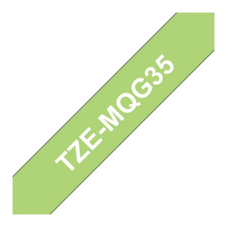 Tape som består av seks lag med materialer, noe som gir en tynn, men ekstremt sterk etikett. Tegnene påføres med termisk overføringsblekk og legges mellom 2 beskyttende lag av PET (polyesterfilm). – Størrelse: 12 mm x 5 m – Farge: hvit på lime – Kompatibel med: P-Touch