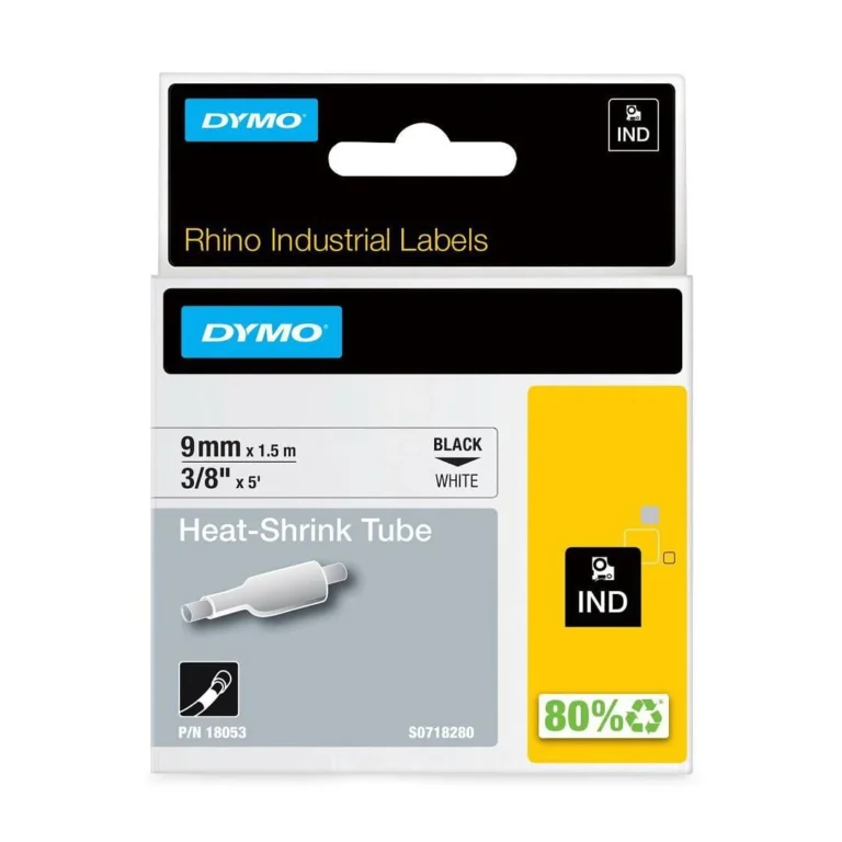 Tape DYMO Rhino kabelmerk. sort/hvit 9mm