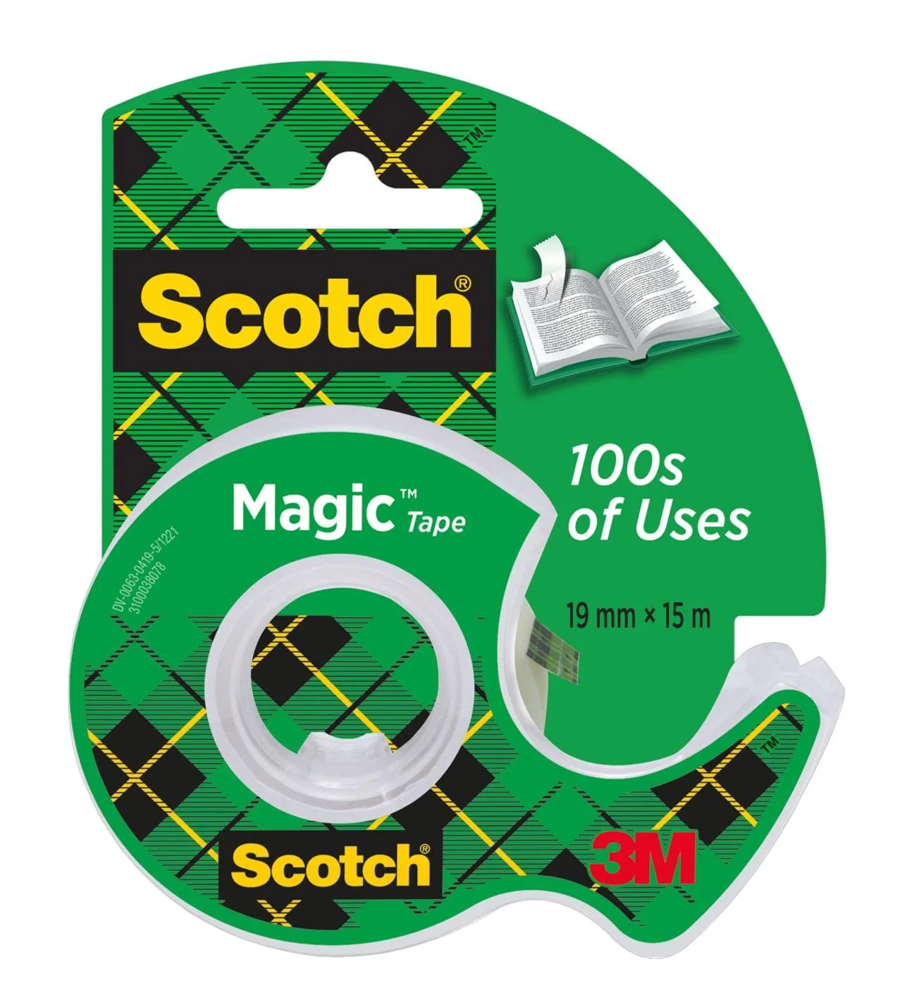 Fest gjenstander med denne Scotch® Magic-teipen som har langvarig klebeevne, kvalitetsoverflate og kvalitetsmateriale. Scotch® Magic-teipen kan brukes til mange formål, for eksempel reparere papirrifter eller feste elementer til hverandre for å lage håndverk.
