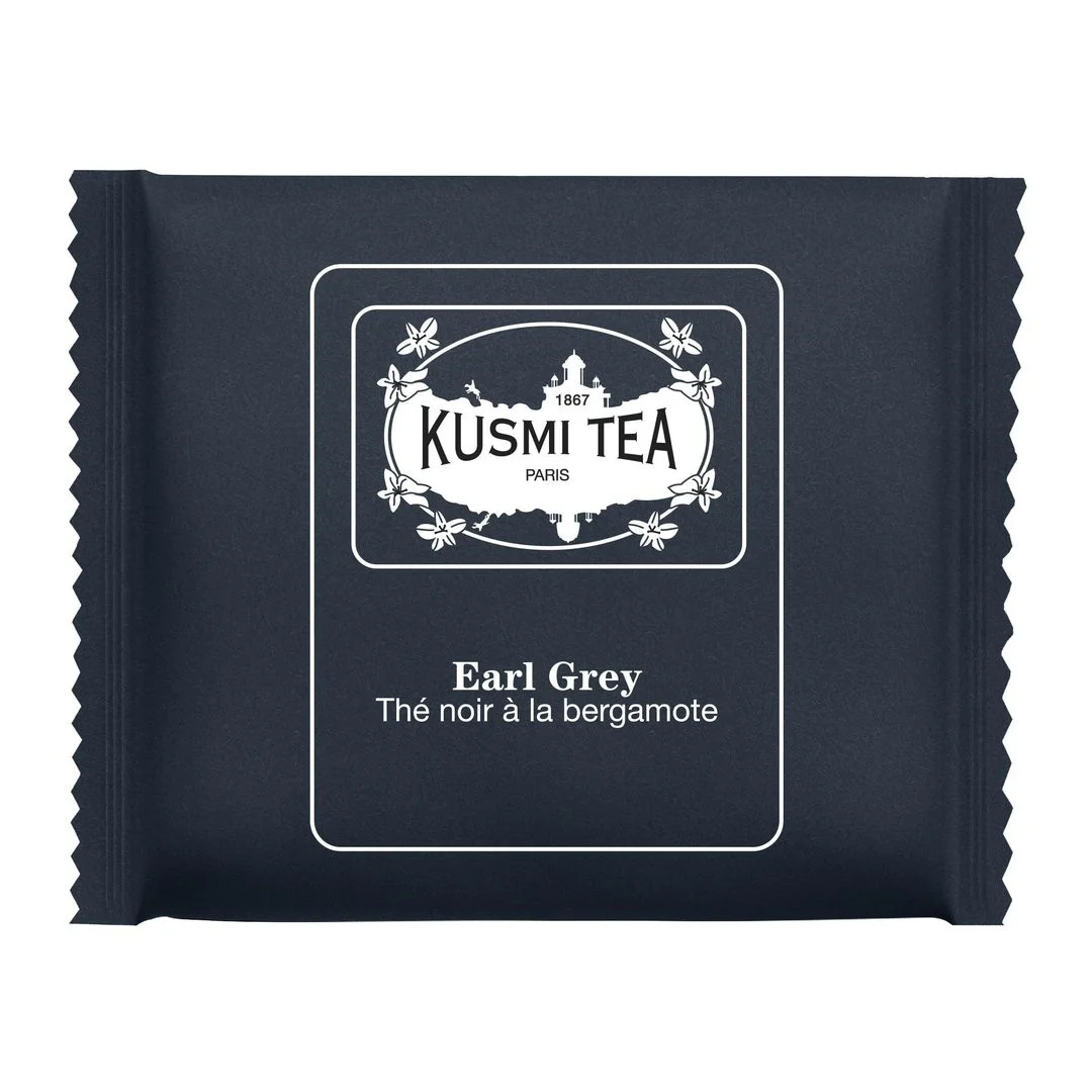 Te-blandingene er resultatet av fagkunnskap, og produseres og pakkes i Frankrike ved bruk av de fineste råvarene. Rikdommen i blandingene er hentet fra mangfoldet i naturen, og Kusmi Tea bruker naturlige smaker og økologiske teer i oppskriftene. Ideell vanntemperatur ved tilbereding av Kusmi Earl Grey er 90˚C, og teen bør trekke 3-5 minutter. Sort te Individuelt innpakkede teposer.