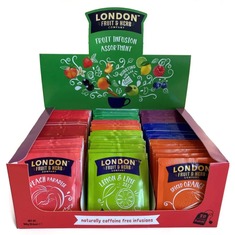 Koffeinfri urtete med smak av assorterte frukter som solbær, sitron/lime, jorbær/vanilje, bringebær, eple, appelsin, blåbær og fersken Legg teposen i koppen først, hell så over 20–30cl vann. Bruk vann, varmet opp til ca 95–100ºC La posen trekke i ca 2 -3 minutter, ligger den lengre kan teen smake beskt Nyt teen.