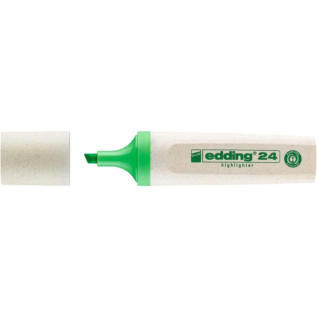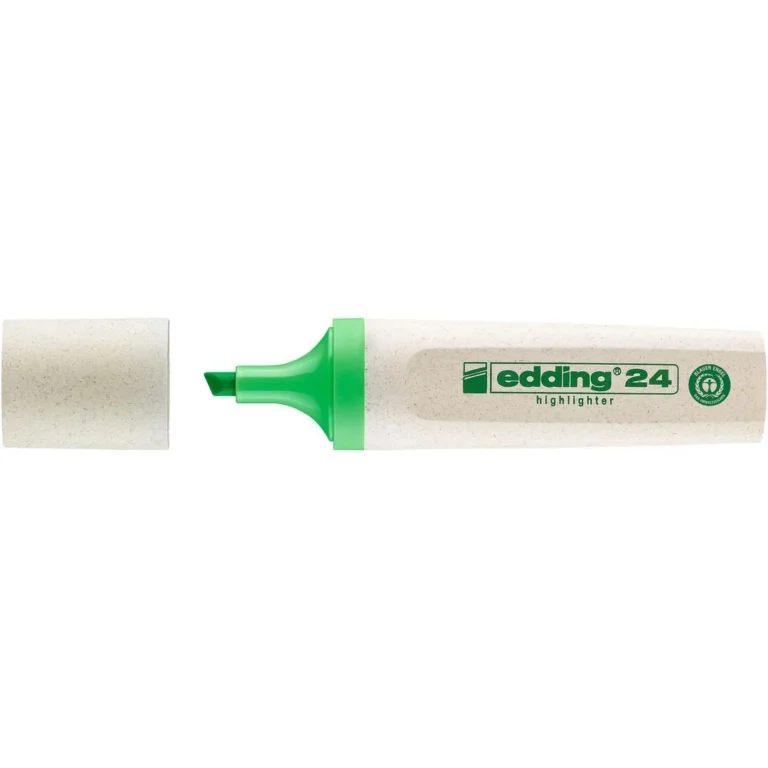 Edding 24 EcoLine-merkepenn skriver, streker under og merker og er laget av 90 % gjenvunnet materiale. Edding 24 EcoLine-merkepenn har en skråskåret spiss med en strekbredde på 2–5 mm og passer utmerket til oppgaver som krever fet og frittflytende skrift.