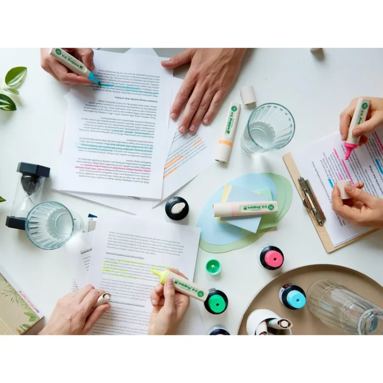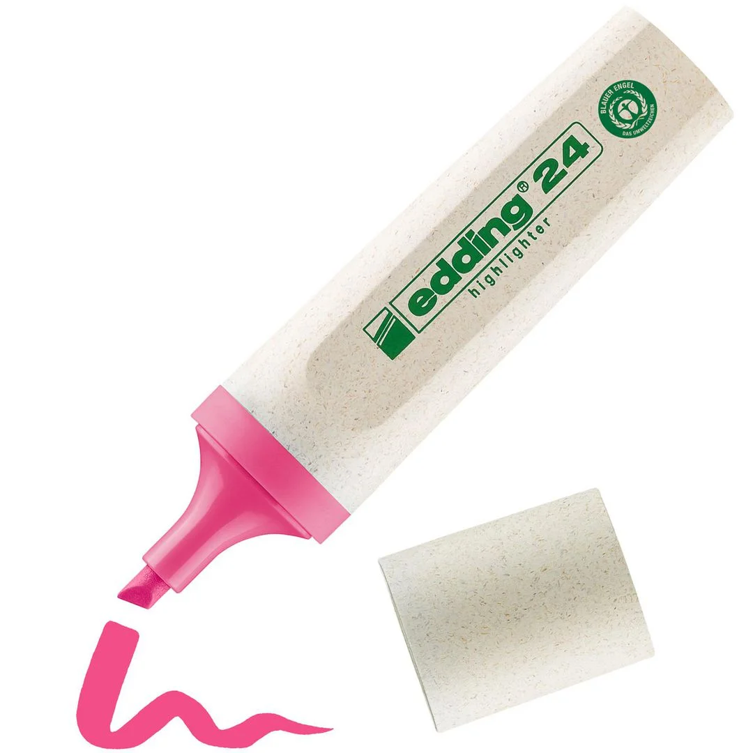 Edding 24 EcoLine-merkepenn skriver, streker under og merker og er laget av 90 % gjenvunnet materiale. Med denne merketusjen kan du merke og streke under på nesten alt slags papir Blekket er vannbasert og gir en dyp og sterk farge. Edding 24 EcoLine-merkepenn har en skråskåret spiss med en strekbredde på 2–5 mm og passer utmerket til oppgaver som krever fet og frittflytende skrift.