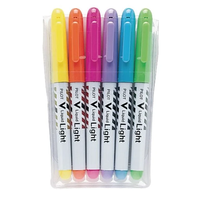 Pilot Spotliter V Liquid Light-merkepennen har en skråskåret spiss og et praktisk blekkvindu. Pilot Spotliter V Liquid Light merketusj bruker en skråskåret spiss som lager en 3,3 mm strekbredde, ideelt for oppgaver som krever en kraftig og sikker stil. Merketusjen kan blant annet brukes til understreking, merking, skriving og retting.