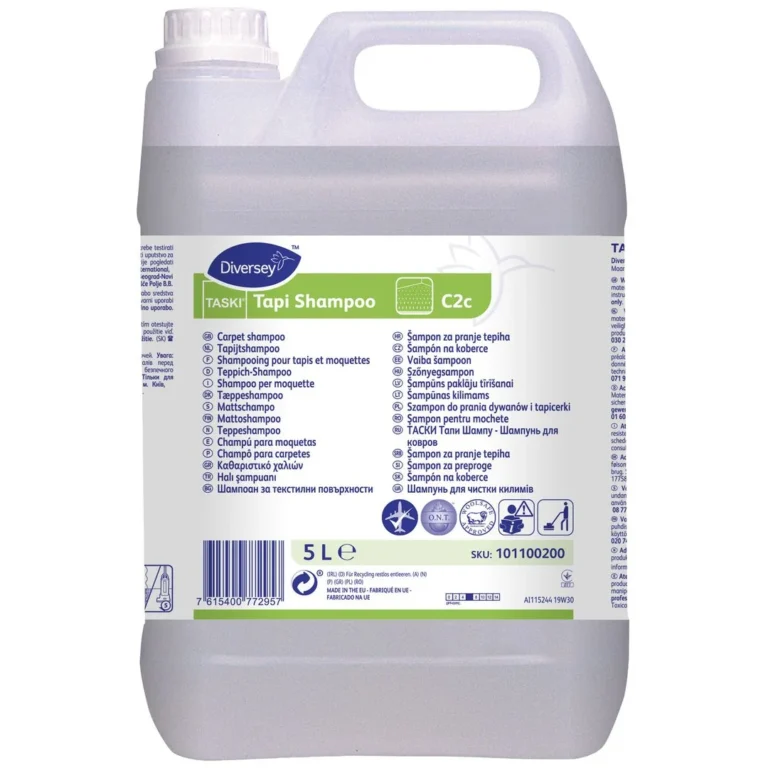 Konsentrert, pH-nøytral teppeshampoo med spesiell kombinasjon av høytskummende tensider. Til intermediær rengjøring av alle typer tepper og møbeltekstiler.