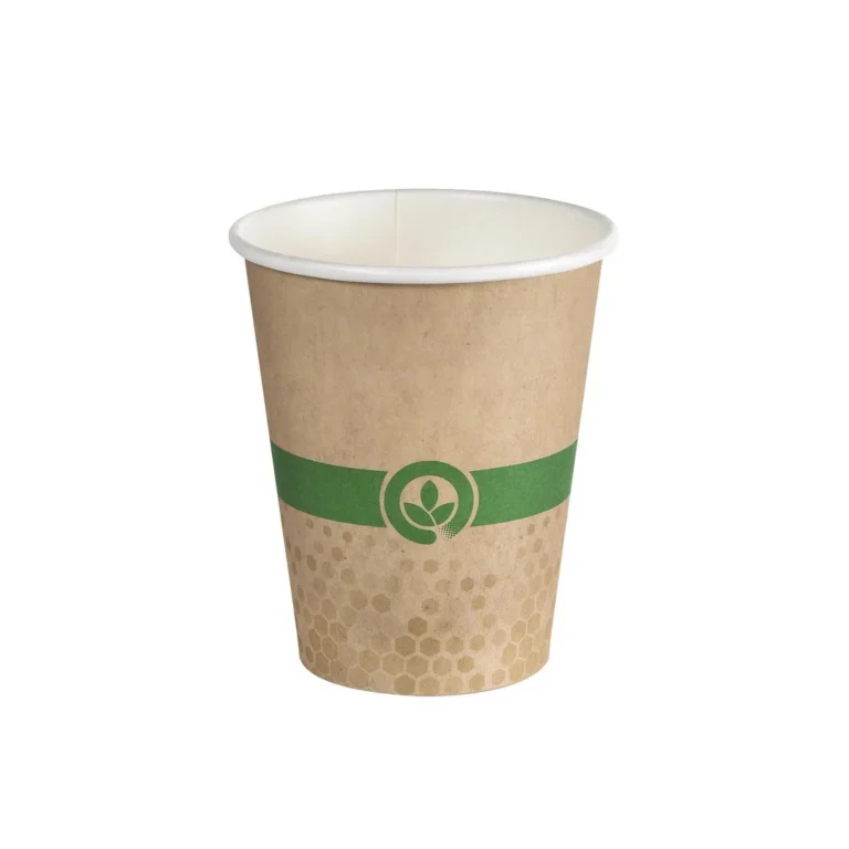 Termobeger 24cl av papp med vannbasert belegg. Etter bruk kan det resirkuleres som papir. Melli pappkopp inneholder mindre enn 0,76% plast. I stedet for en plastlaminering brukes det her en vannbasert belegningsteknologi. Det er trykt som vannbasert blekk, slik at det kan absorberes i papirfibrene i stedet for å sitte på toppen som et ekstra lag. Dette reduserer mengden materiale som trengs – samtidig som det er lekkasje- og fettbestandig. Begeret kan brukes til alle typer mat og drikke, med en temperatur på inntil 90°C. Ettersom koppene ikke har plastlaminering, anbefales de for kortvarig bruk, og ikke til lagring av mat og drikke. Pappkoppene er ikke egnet for bruk i mikrobølgeovn. Kan komposteres i hjemmekompost, og resirkuleres som papp. Melli pappkopp inneholder mindre enn 0,76% plast. I stedet for en plastlaminering brukes det her en vannbasert belegningsteknologi. Det er trykt som vannbasert blekk, slik at det kan absorberes i papirfibrene i stedet for å sitte på toppen som et ekstra lag. Dette reduserer mengden materiale som trengs – samtidig som det er lekkasje- og fettbestandig. Begeret kan brukes til alle typer mat og drikke, med en temperatur på inntil 90°C. Ettersom koppene ikke har plastlaminering, anbefales de for kortvarig bruk, og ikke til lagring av mat og drikke. – Termobeger med vannbast belegg – Ikke egnet for bruk i mikrobølgeovn – Kan komposteres i hjemmekompost – Resirkuleres som papp – Volum: 24cl