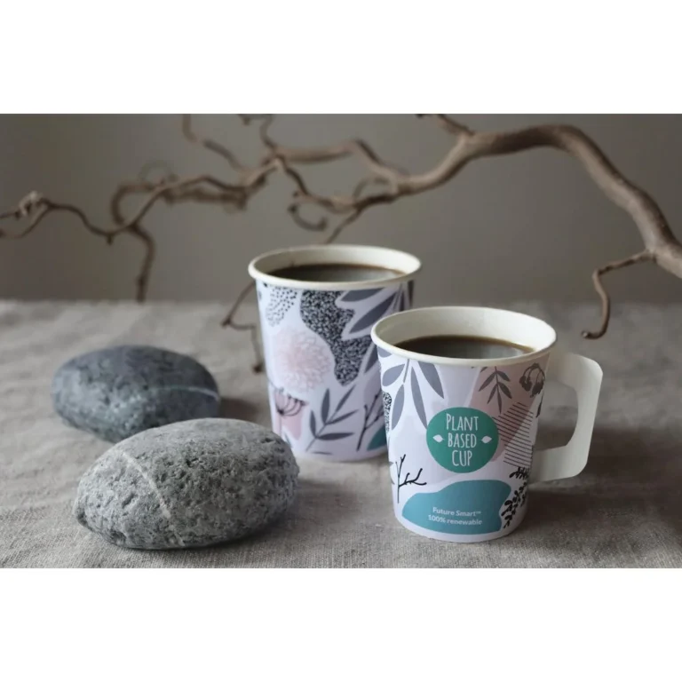 Praktisk termobeger med hank, fremstilt av 100% plantebaserte materialer. Kaffebegeret Harmony 17,5cl er »Future Smart». Det er laget av 100% plantebaserte materialer, uten bruk av fossile ressurser. Termobegeret, inkludert hanken, er fremstilt av kartong, med et tynt innvendig belegg av biobasert polyethylen (PE), fremstilt av fornybare råvarer.
