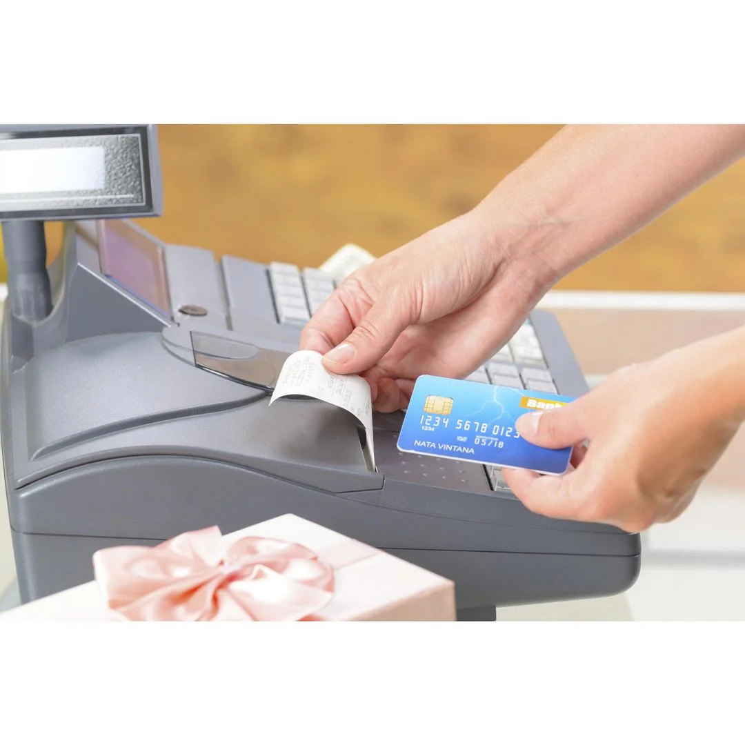 Termiske papirruller designet spesielt for kredittkortmaskiner. Disse rullene er laget av 1-lags termisk papir, Fenol-fri 55g. 52g termisk papirruller for tydelig og konsis utskrift hver gang, den trykte kvitteringen forblir leselig og vil ikke falme over tid (minimum 35 år), Trygg å bruke uten kjemikalier og godkjent for direkte kontakt med mat. 57mm bredde og 40mm diameter kortmaskinruller for bruk med alle merker av kredittkortmaskiner inkludert Epson, Bixolon, Spire, Zebra, Ingenico, Verifone og Pax. Hver kassarull er 18 m lang (+ eller – 2 m) for færre rullbytter.