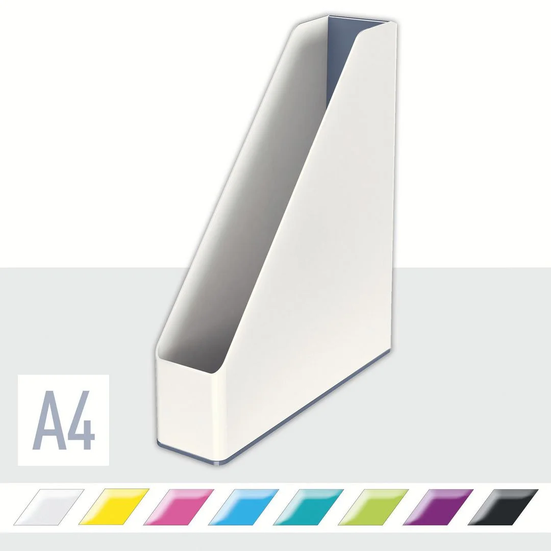 Iøynefallende, premium kvalitets tidsskriftsamler i flotte, metalliske farger med glanset finish. Denne robuste tidsskriftsamleren passer perfekt sammen med de andre Leitz WOW-produktene.