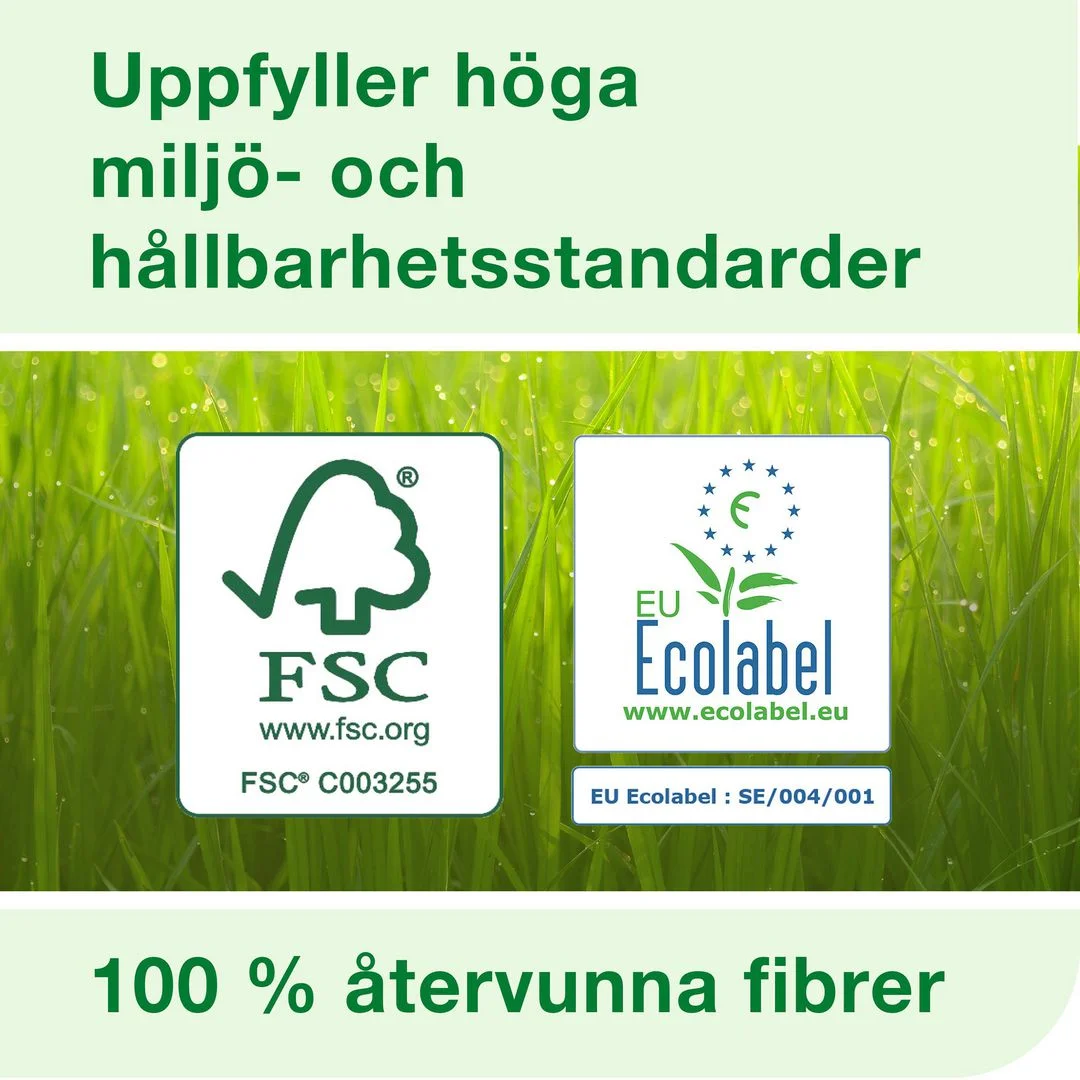 Høy kapasitet: mindre vedlikehold og redusert risiko for papirmangel. Attraktiv dekor, designet for å gjøre varig inntrykk. 2-lags 850 tørk pr/rull Sekk med 12 ruller.