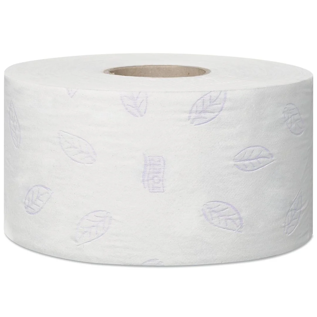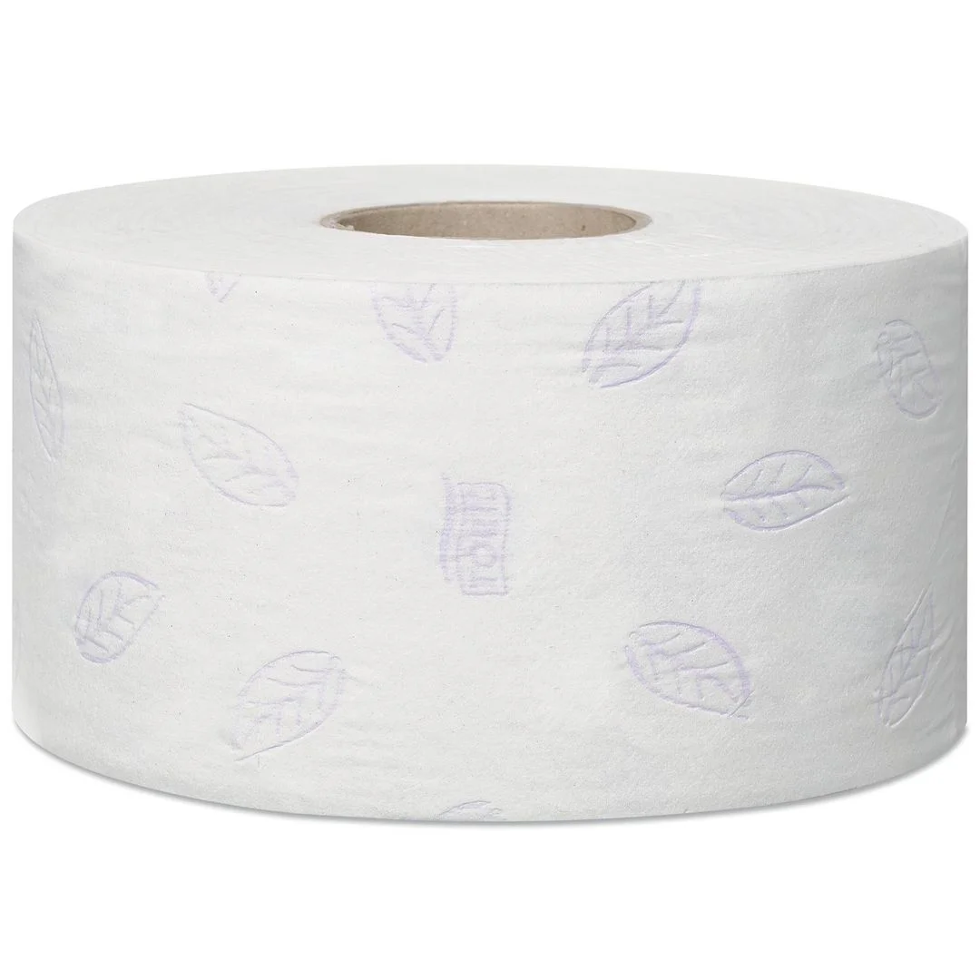 Tork Mini Jumbo Toalettrull Premium 3-lags tilbyr førsteklasses utseende, følelse og ytelse, og passer for toalettrom med medium til høy trafikk. Luksuriøs, ekstra myk 3-lags papir i klar hvit farge for et varig inntrykk Høy kapasitet betyr mindre vedlikehold Preget for ekstra tykkelse og bedre utseende Trykket med et vakkert lilla løvbladdesign som vil gjøre toalettrommet mer eksklusivt Kjerne, indre diameter: 5,9 cm Preging.