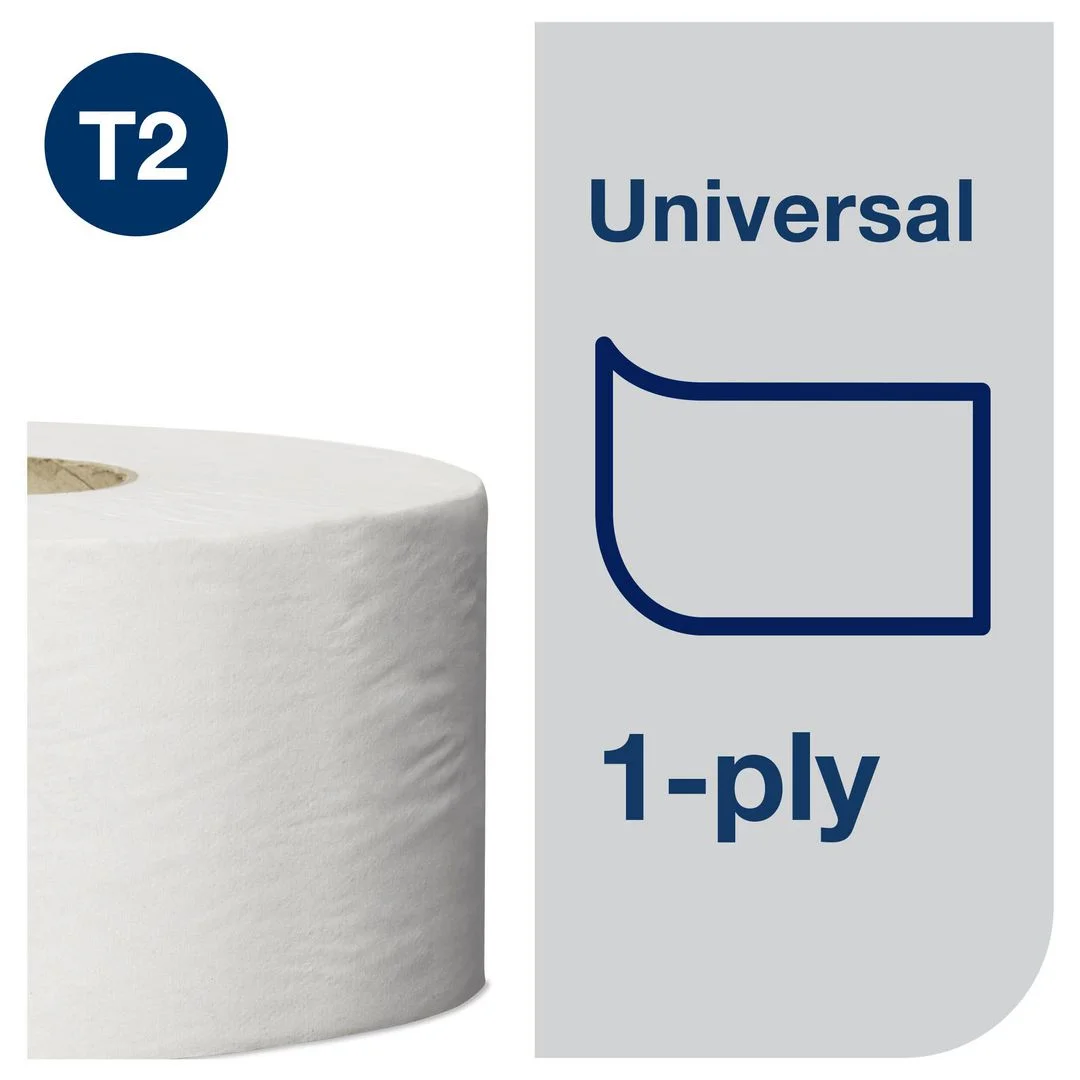 Tork Universal Mini Jumbo T2 toalettpapirrull har 1-lags ark og løser seg raskt opp, noe som gjør den ideell for septiksystemer. Oppgrader toalettet med Tork Universal Mini Jumbo T2 toalettpapirruller.
