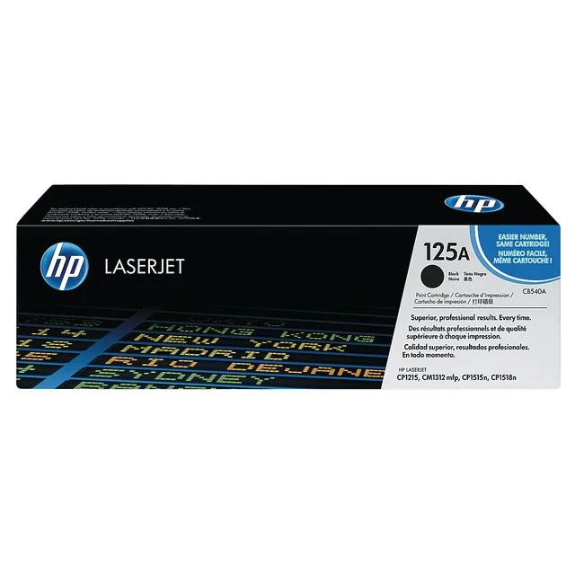 Denne sorte HP 125A-tonerkassetten gir skarpe, profesjonelle og effektive utskriftsresultater med pålitelig ytelse Fordi den er laget for å gi definert grafikk og tydelig tekst, kan denne tonerkassetten garantere utførelse av høy kvalitet Den er enkel å resirkulere og er garantert fri for skader og feil i garantiperioden.