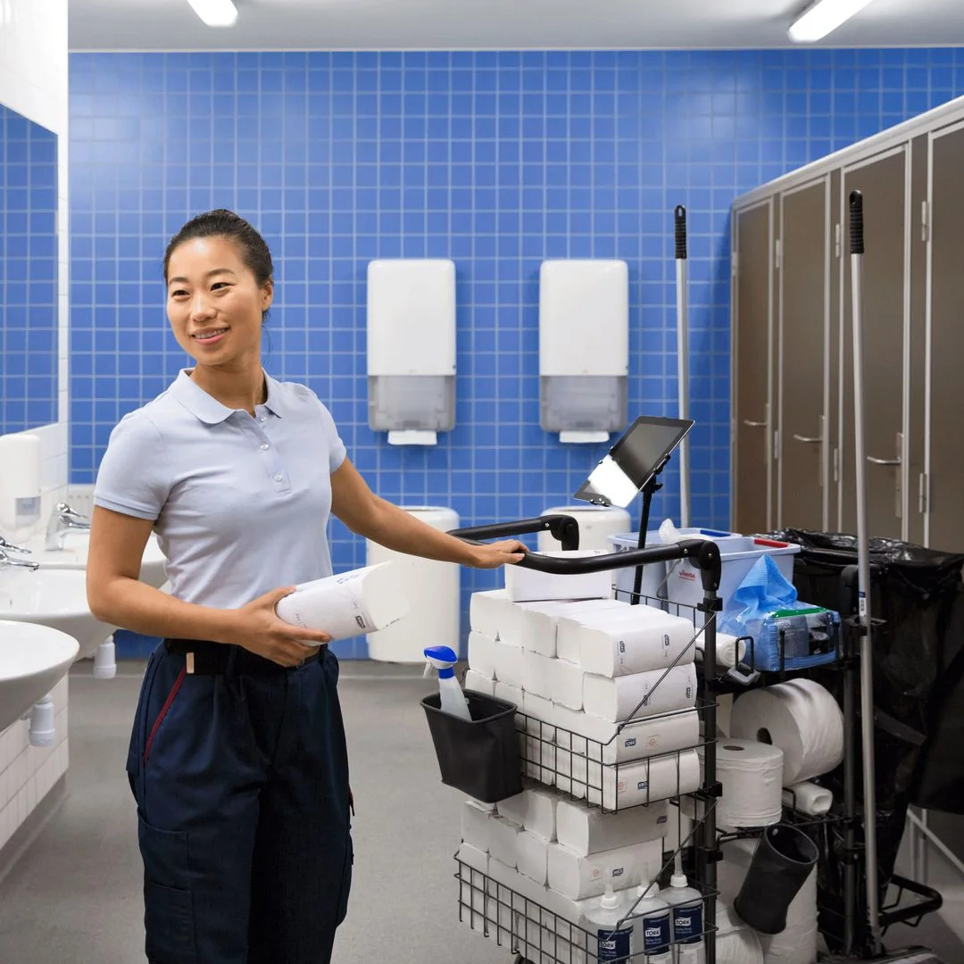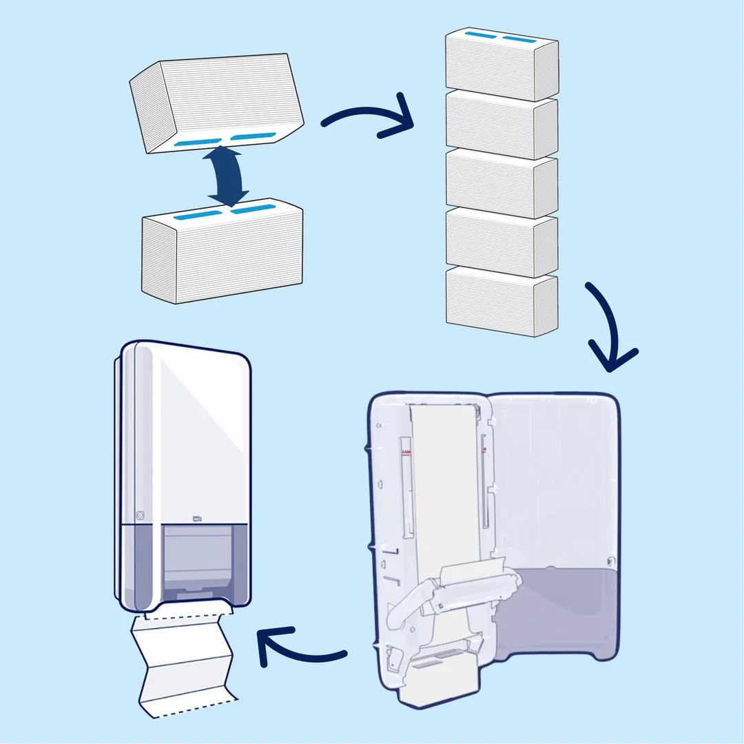 Tork PeakServe® i Elevation-design: vår nyeste innovasjon utformet for toalettrom med høy trafikk, der personalet må maksimere rengjøringstiden og opprettholde en god flyt for gjestene. Systemet, som er kompatibelt med Tork PeakServe® Continuous® håndtørk , har en svært stor kapasitet på over 2050 håndtørk, som kan utmates raskt og uten avbrudd for å opprettholde en god flyt. De komprimerte refillene er raske å fylle på, kan etterfylles når som helst, og er enkle å oppbevare og transportere.
