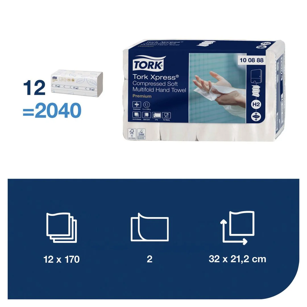 Utmating av ett tørk om gangen bidrar til å forbedre hygienen og redusere sløsing siden gjestene kun berører papiret de tar. H2 kompakte dispensere er svært praktiske og får plass på selv de minste stedene. Brettet lengde: 8cm 2-lags Godkjent for direkte kontakt med mat 170 ark pr bunt/2040 i sekk.
