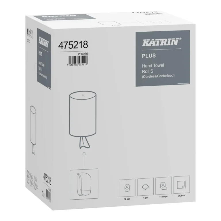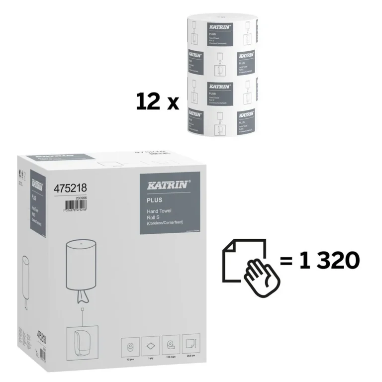 Myk og sterk tørkerull for effektiv tørking av både hender og overflater. Høy absorpsjon og styrke. Katrin Plus Tørkerull S 1 er en myk og sterk tørkerull av høyeste kvalitet, designet for effektiv tørking av både overflater og hender. Med sin høye absorberingsevne er papiret raskt og effektivt å tørke opp søl og væsker. Tørkerull er mykt og behagelig, den varer lenge takket være lavt forbruk.