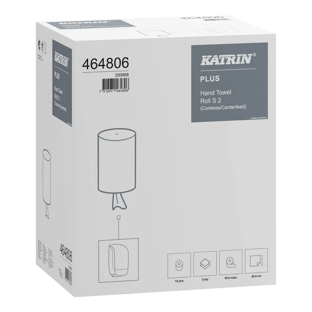 Myk og sterk tørkerull for effektiv tørking av både hender og overflater. Høy absorpsjon og styrke. Katrin Plus Tørkerull S 2 er en myk og sterk tørkerull av høyeste kvalitet. Med sin høye absorberingsevne er den ideell for raskt og effektivt å tørke opp søl og væsker.