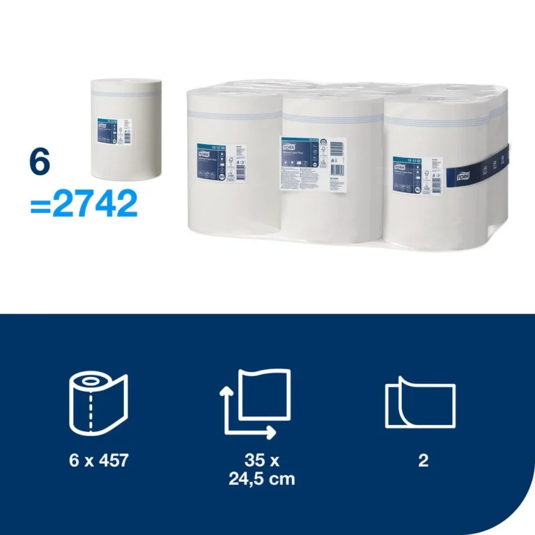 - Utstyr arbeidsrommet med allsidige Tork M2 tørkeark av papir. Hver tørkerull har 2-lags ark, noe som gjør papiret absorberende og slitesterkt. Dette produktet egner seg for å tørke hender og søl, tørking av overflater og vasking. Det er laget for å fremme hygiene og perfekt egnet til både tørking og rengjøring.