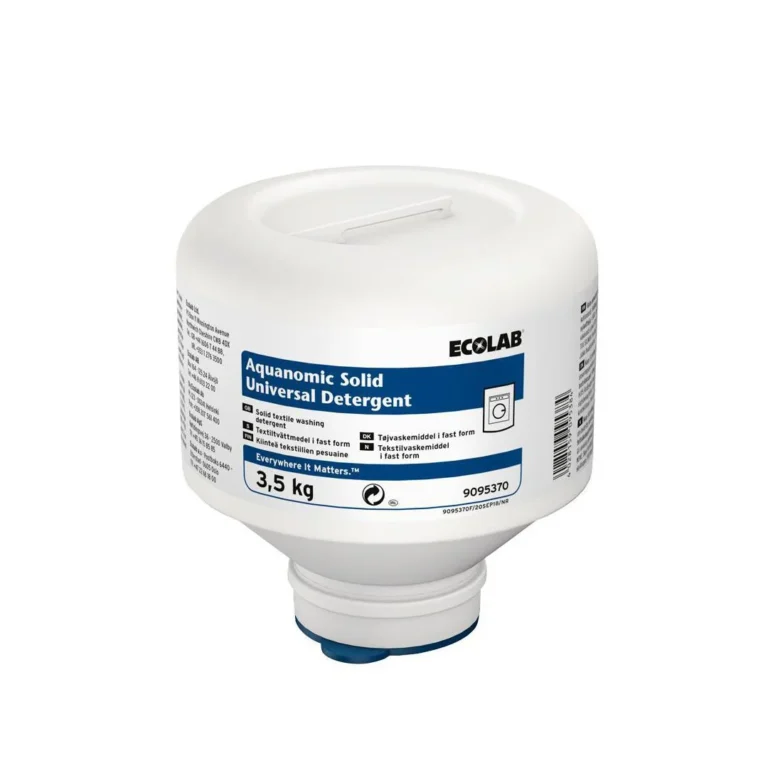 Aquanomic Solid Universal Detergent tøyvaskemiddel Konsentrert, lavalkalisk enkomponents tekstilvaskemiddel velegnet til bruk i alle vannforhold, fra bløtt til hardt vann.