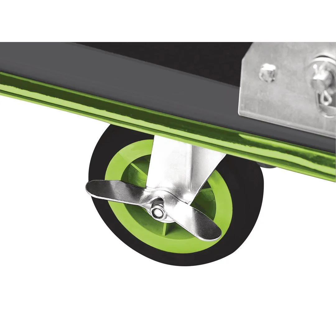 Denne profesjonelle modellen med 150kg kapasitet kombinerer praktisk brukervennlighet og robusthet. Den kan enkelt legges sammen for plassbesparende oppbevaring, samtidig som den tilbyr en solid og slitesterk stålramme. De 100mm store hjulene gir utmerket stabilitet og manøvrerbarhet, selv på ujevne underlag. Denne trallen er ideell for tung bruk i miljøer der høy pålitelighet er nødvendig.