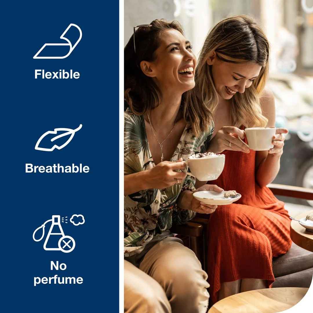 Disse tynne og diskré truseinnleggene kan brukes i alle typer undertøy , og CurveFit™-teknologien sørger for at de former seg etter kroppen. Pustende topplag Tynt og diskré truseinnlegg Parfymefri Dermatologisk testet.