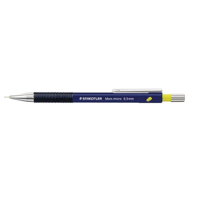 Den har en hette med lommeklips som gjør den lettere å ta med seg. Det myke blyet i blyanten knekker sjelden. STAEDTLER Triplus® Micro 775 har 0,3 mm bly som er ideelt for skrift som skal være presis og pen. Blystørrelse: 0,3 mm Pene og presise streker Ergonomisk kropp som gjør det komfortabelt å skrive Gummigrep Slitesterk, forkrommet metallspiss Beskyttende blyhylse glir tilbake ved bruk Viskelær uten PVC og lateks Kan etterfylles.