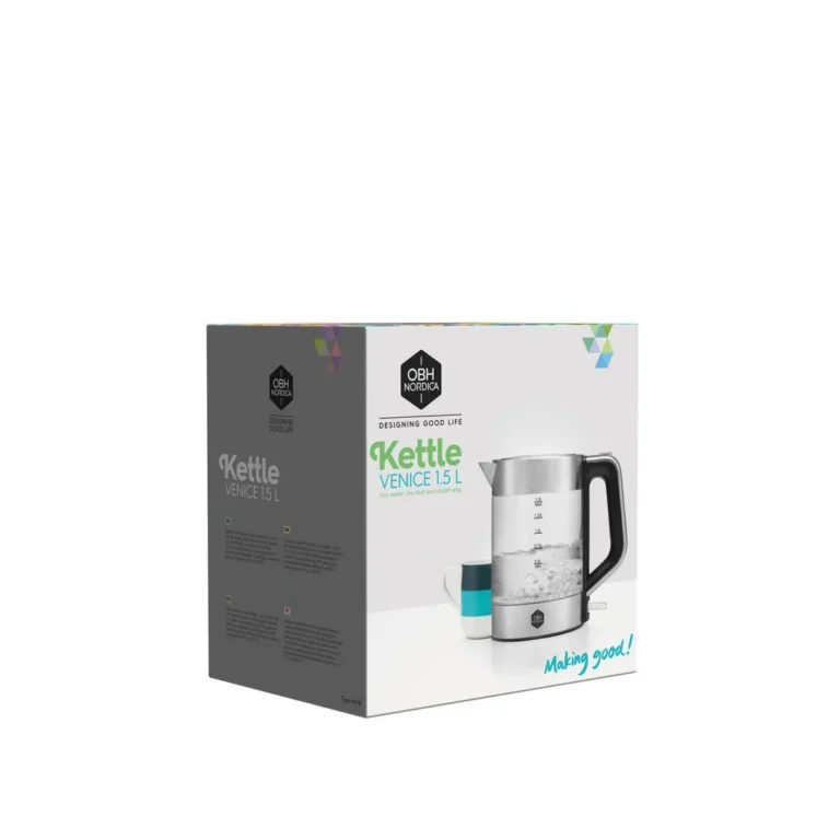 Kombinasjonen glass og rustfritt stål er ikke bare pen, men gjør vannkokeren veldig enkel å rengjøre. Lag en god kopp te eller effektiviser matlagingen ved å koke opp vann rett i Venice Glass Kettle. Automatisk deaktiveringsfunksjon og tørrkokingssikring for sikker bruk Med kapasitet på 1,5 l dekker den behovene dine uten å ta for mye plass på kjøkkenet.