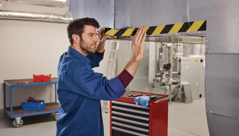 Til merking av maskiner og utstyr, oppmerking av gulv, trappetrinn samt avsperring av byggeplass og ulykkessteder m. m.