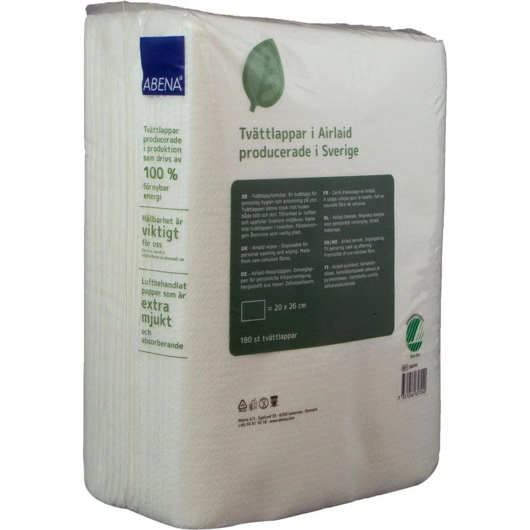 Vaskekluter av airlaid-papir for personlig hygiene. Airlaid er ekstra mykt og derfor svært godt egnet til vask av pasienter. Materialet er luftbehandlet slik at det blir ekstra mykt og absorberende (6 ganger egen vekt) samtidig som det har høyere våtstyrke enn tradisjonelt papir.