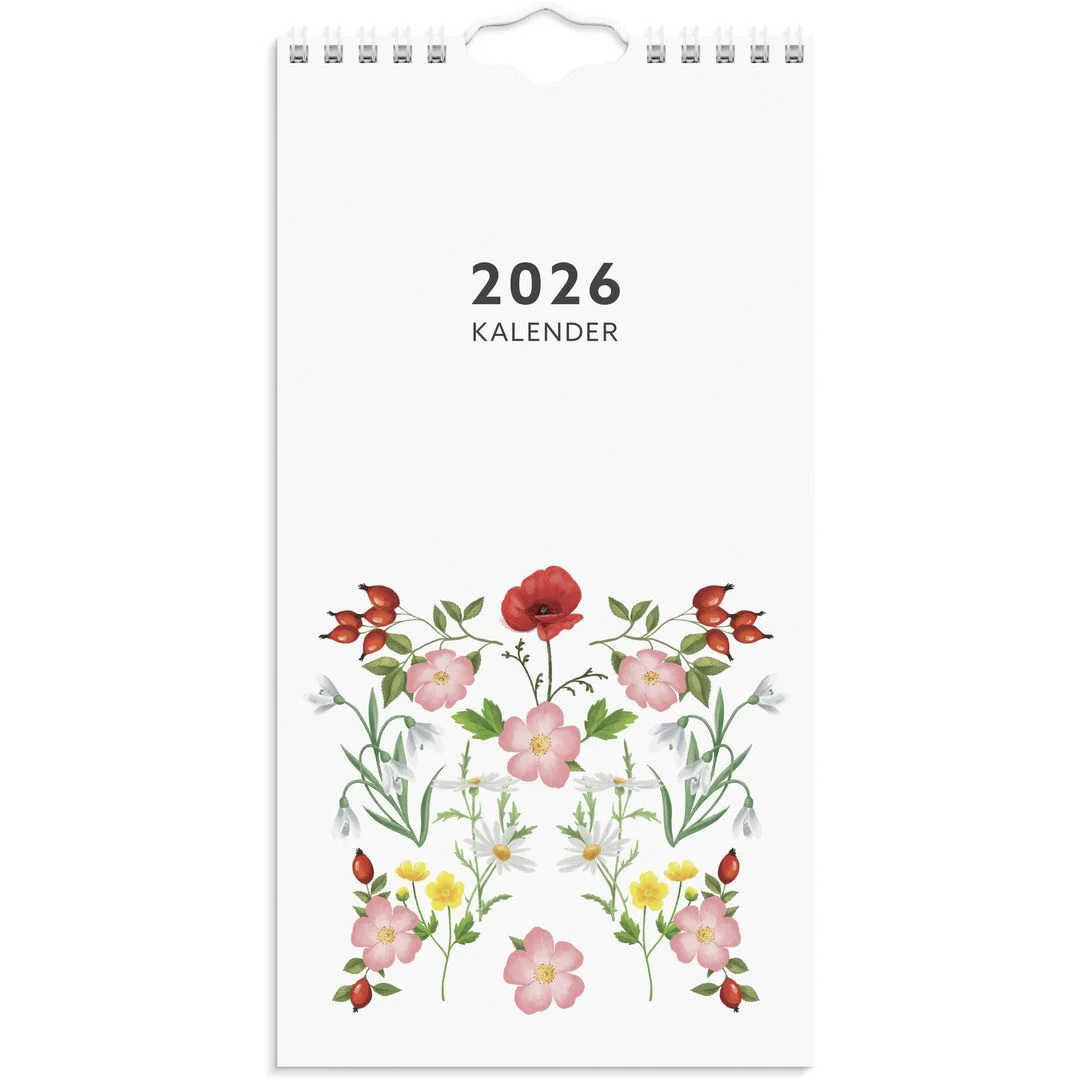 Liten, lettplassert veggkalender med en søt blomsterkrans som pynter opp kalenderen.