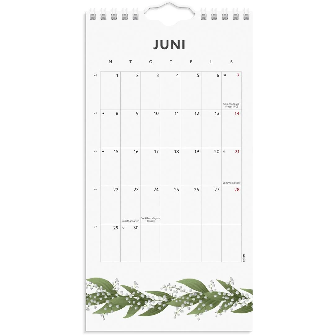 I månedskalenderen er det mulighet for å notere. Med månefaser, helligdager og kongelige fødselsdager. Opphengsbøyle gjør det enkelt å henge den på veggen.nKalenderen er miljømerket FSC®, som betyr at hele produktet er produsert med papir og annet trevirke fra et ansvarlig og bærekraftig skogsbruk.