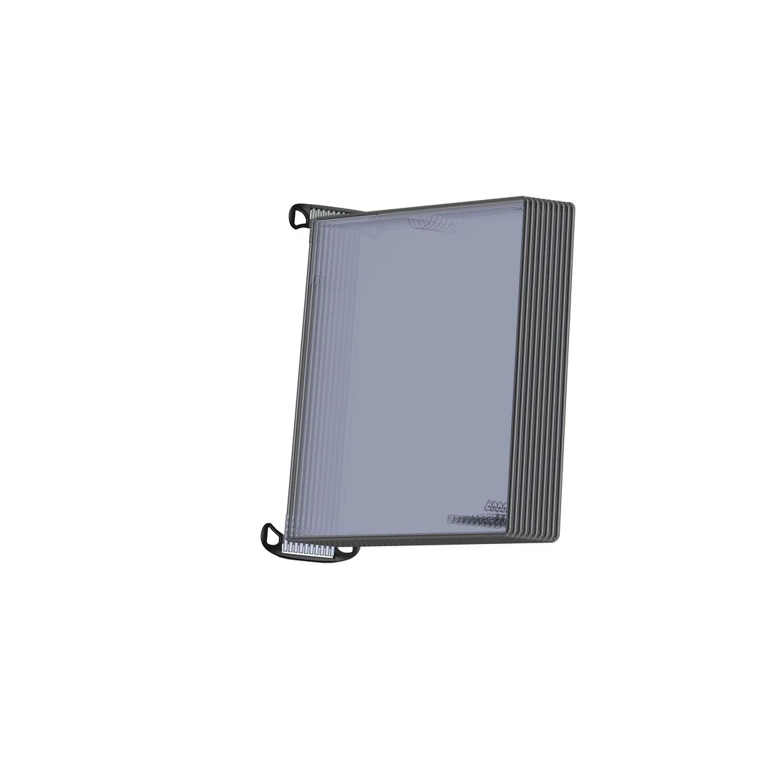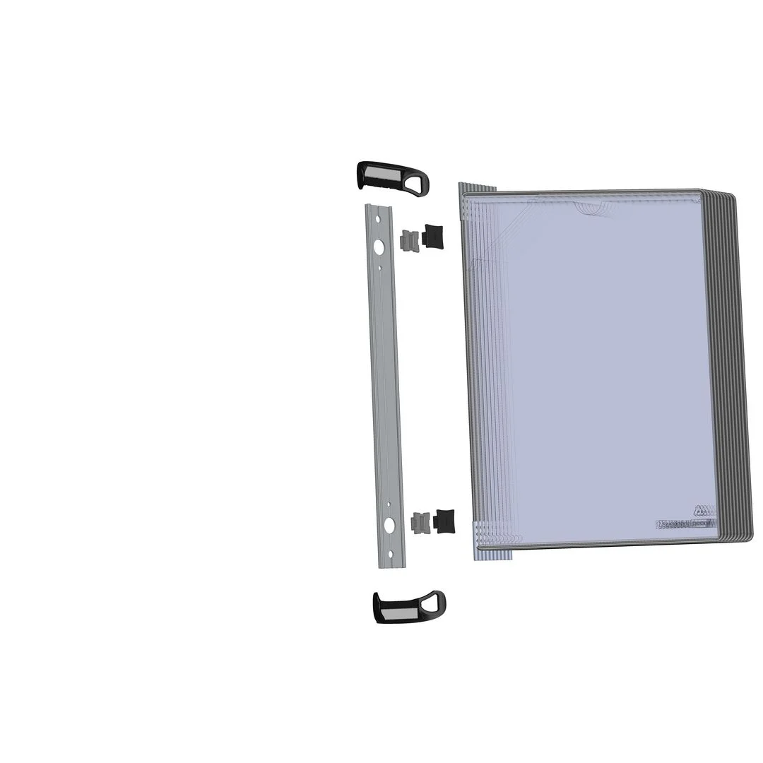 10 PP-lommer med stålforsterket ramme Easy Load-funksjon for enkel dokumentinnsetting Monteres med sterke Neodyme-magneter 10 års garanti.