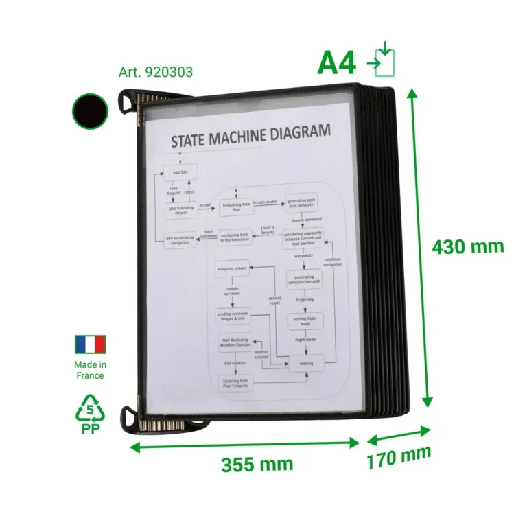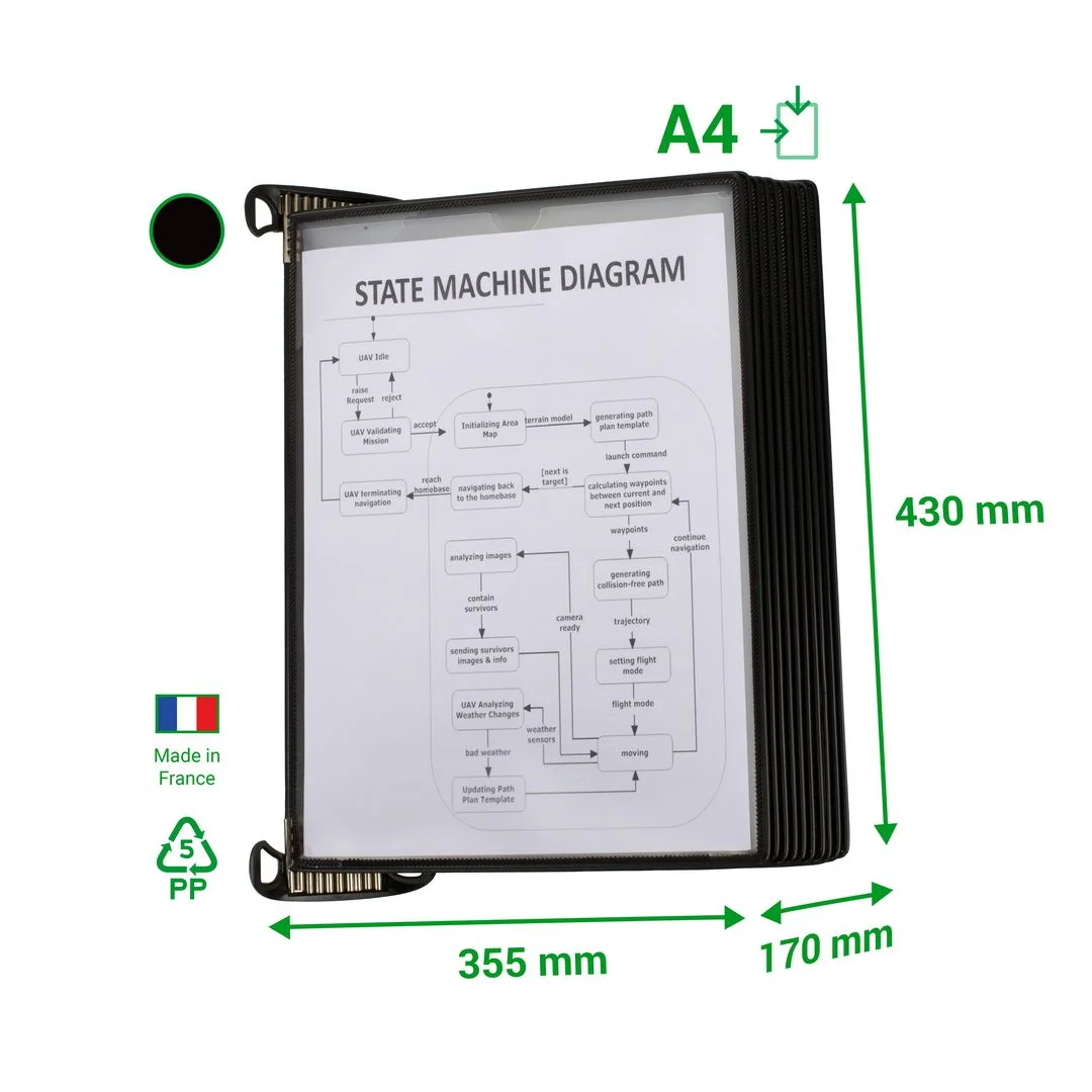 - Veggstativ DJOIS A4 med 10 lommer og et patentert magnetisk monteringssystem. Perfekt for hyppig bruk, lommer kan enkelt fjernes og byttes ut. Lommene er laget av slitesterk PP med stålforsterkede rammer og bred hjørneåpning for rask dokumentinnsetting. Beskytter dokumenter mot støv og slitasje.