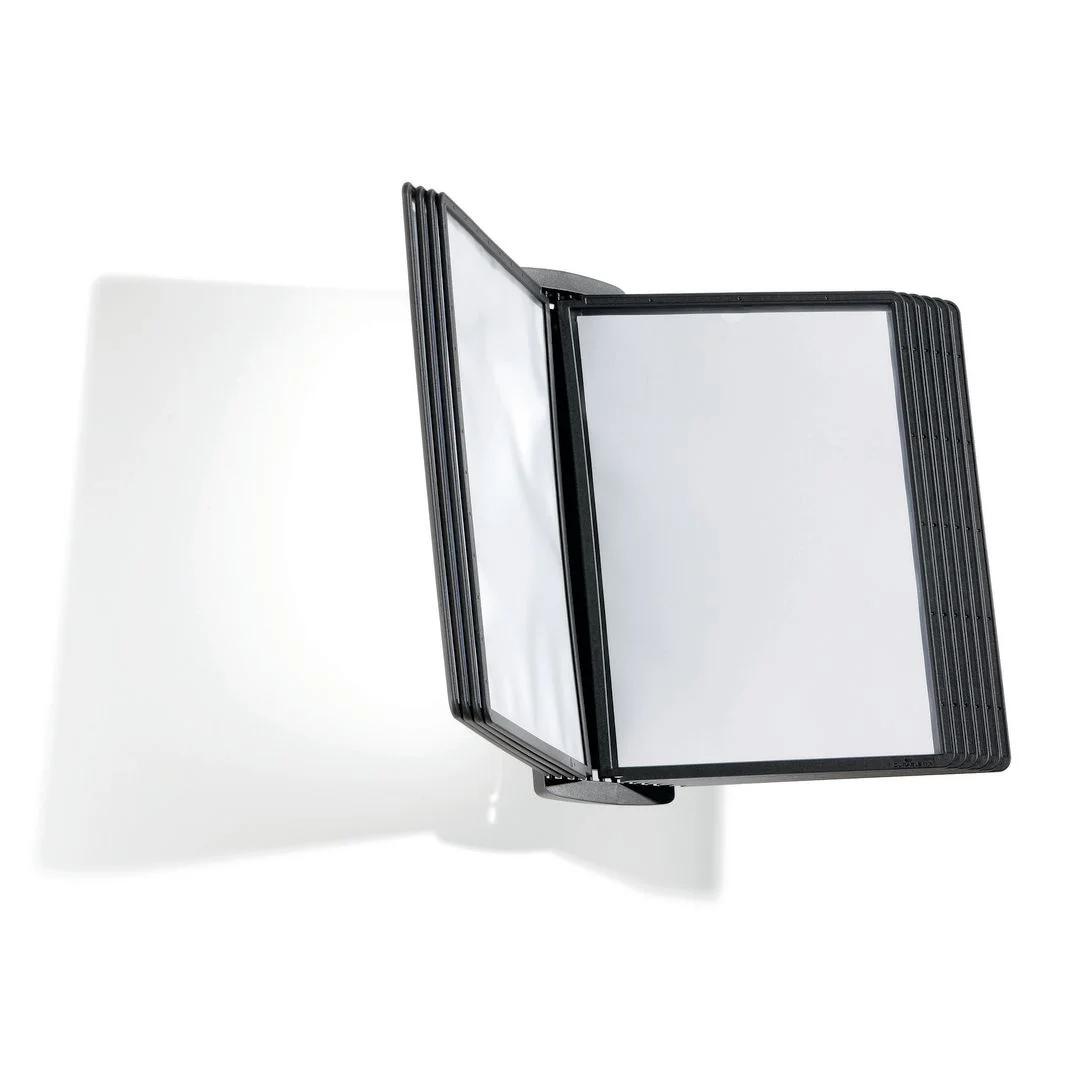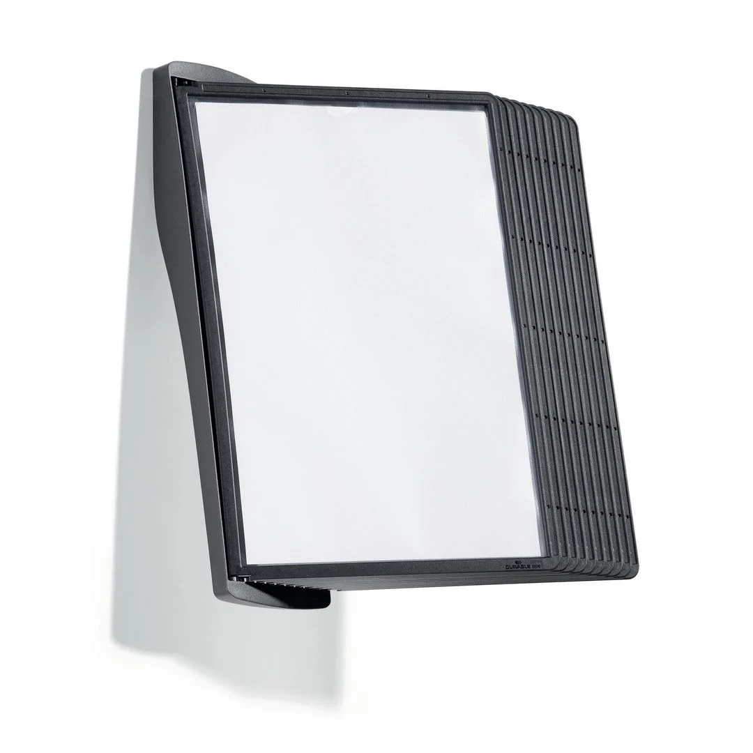 Optimaliser dokumentorganiseringen på veggen. SHERPA® veggstativet med 10 registerlommer i A4-format gir en effektiv løsning for organisering og visning av dokumenter. Laget av polypropylen med farvede profilrammer og refleksjonsfri folie, er lommene ideelle for bruk med scannere.