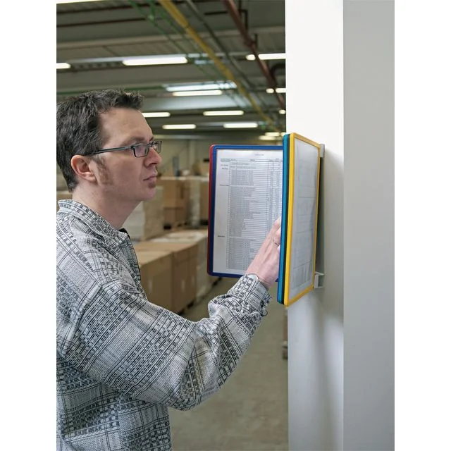 Smidig og slitesterkt veggfeste Bakstykke av metall, lommer og faner av polypropylen Sort, rød, gul, grønn og blå kanter på rammene, to av hver.